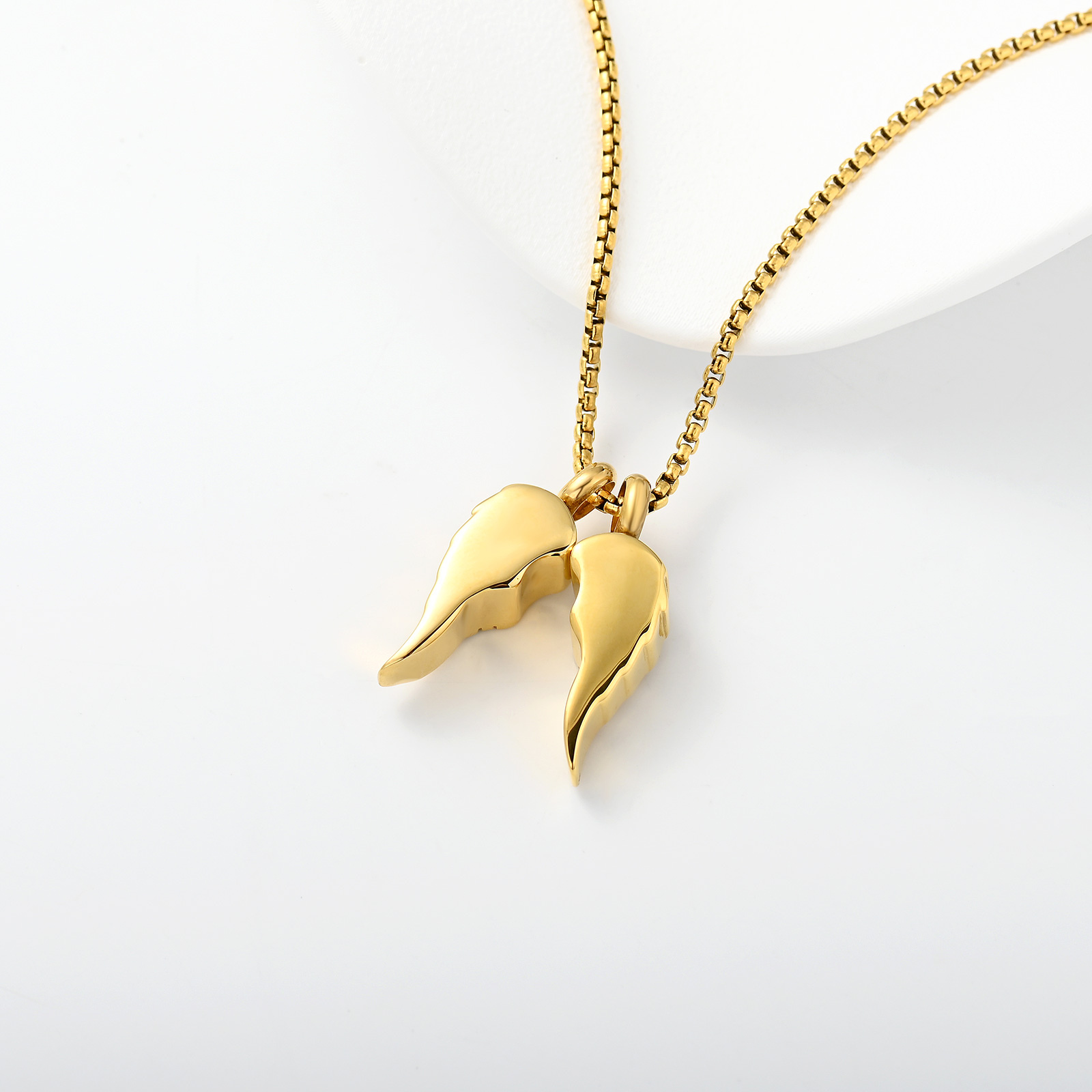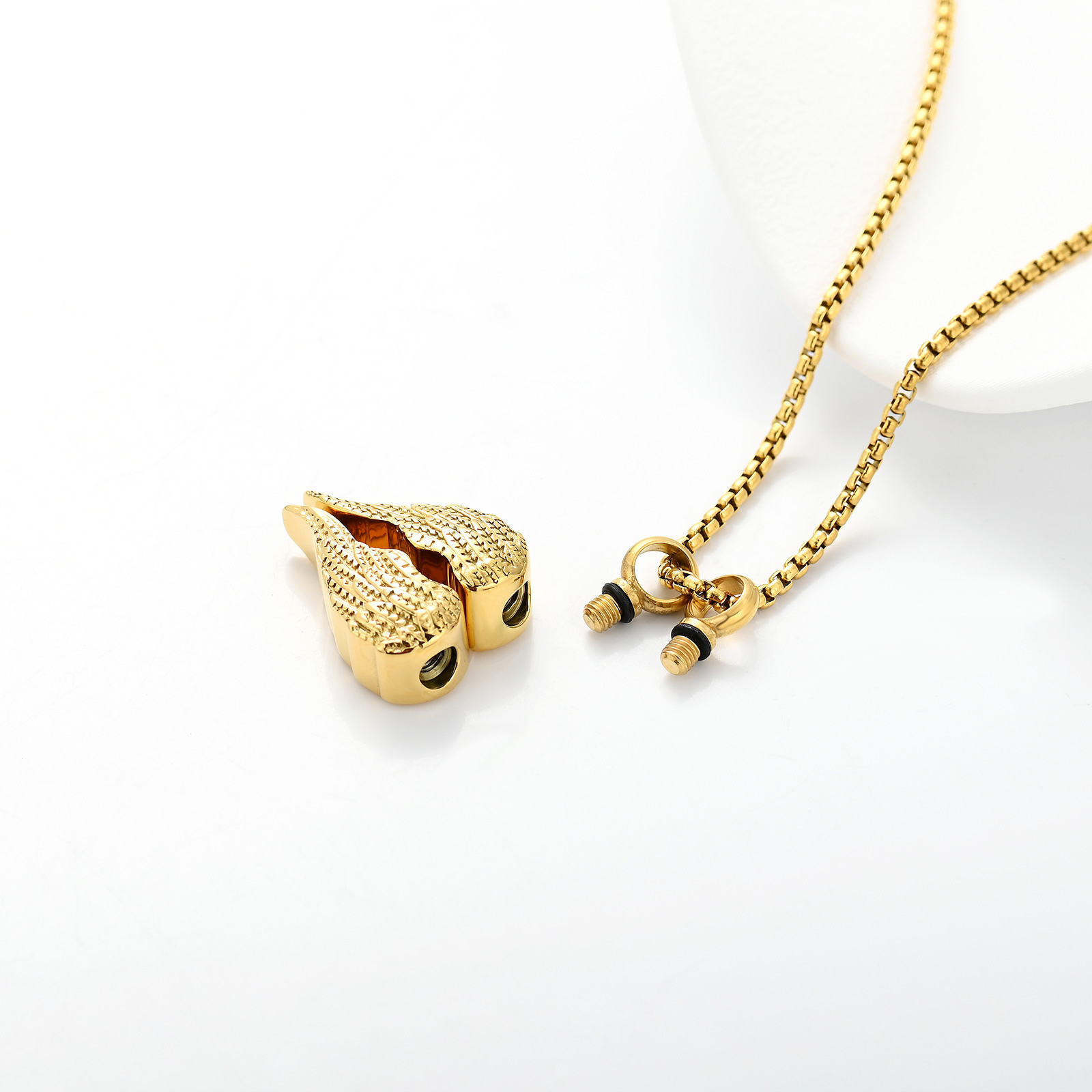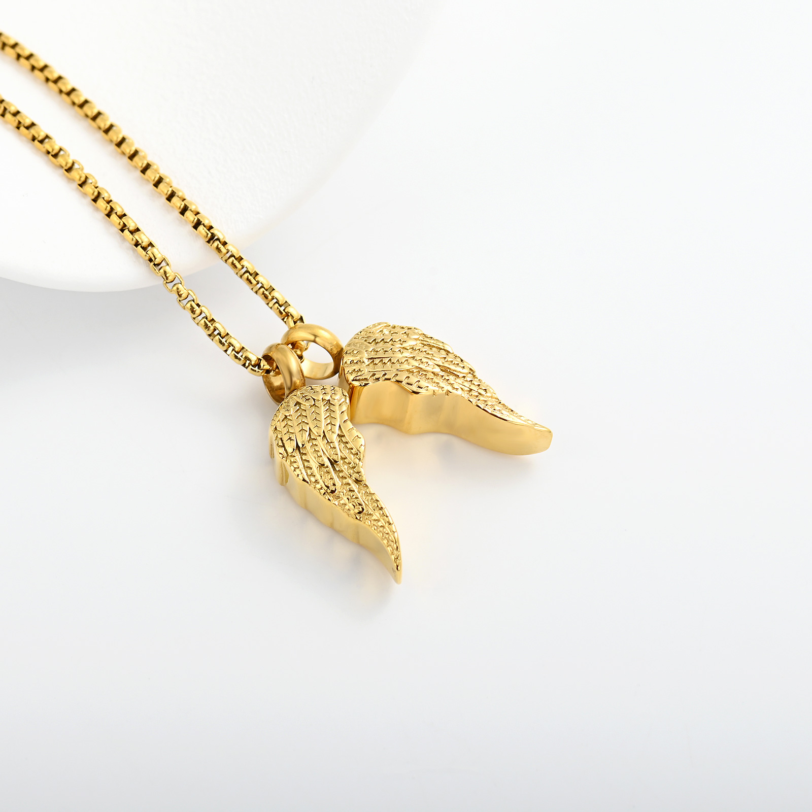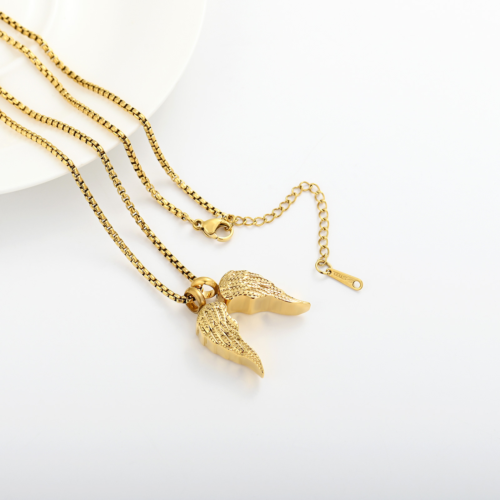Guardian Wings Memorial Necklace – Gold Angel Wing Urn Necklace for Ashes or Hair